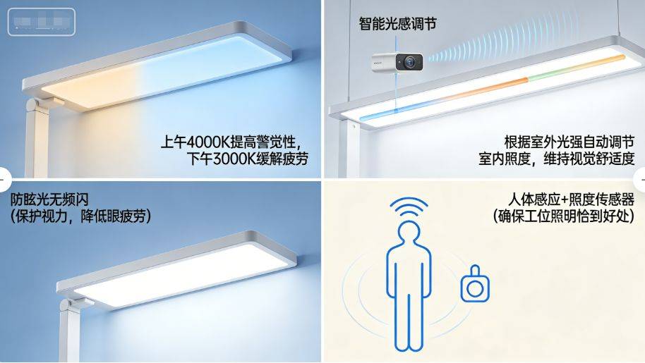 智能系统还可以根据室外自然光强度自动调节室内照度,维持恒定的视觉舒适度。