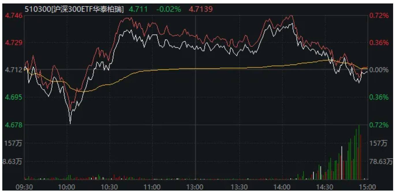 2点半左右,多只沪深300ETF和上证50ETF的抛盘才“姗姗来迟”,抑制住大盘涨势。