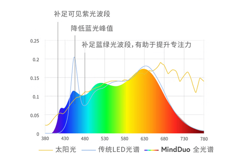 它采用了自然光全光谱技术,有害蓝光含量低得惊人,连RG0标准的5%都不到,彻底跟蓝光危害说拜拜。而且,它还特别补充了益眼光,红光含量提升了120%,让眼睛更有活力,天青光也多了20%,帮助睫状肌好好放松放松。