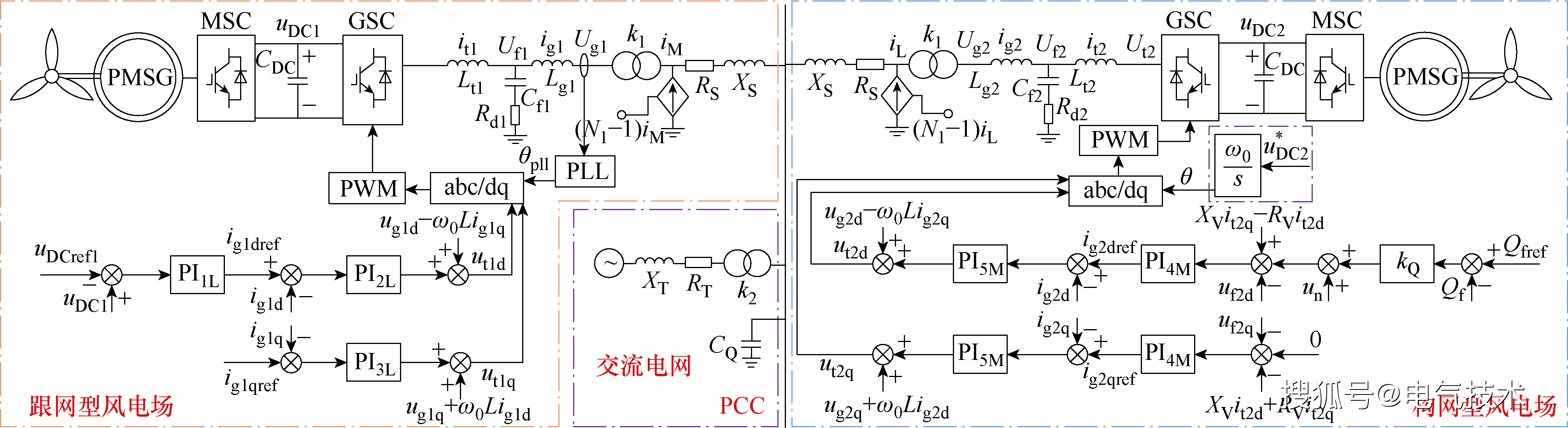 首先,混合风电场中如果发生由跟网型风机引发的SSO,那么振荡的主导“演员”依然是跟网型风机自身的参数(比如锁相环、电流环参数),新加入的匹配构网型风机的参数几乎不参与这个“失调的舞蹈”。这意味问题根源仍在传统风机身上。