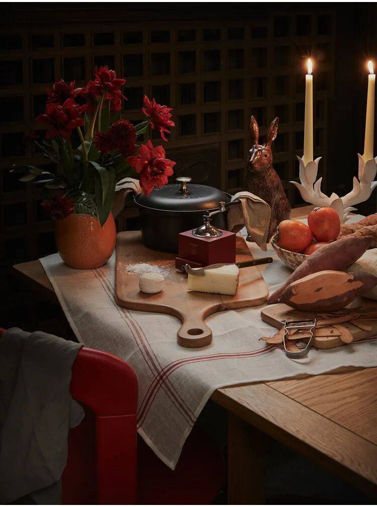 走入 Artilleriet the Kitchen ,首先看到的便是一张宽阔、散发温润色泽的原木长桌,从瓷碗、碟盘、餐具、小烛台,乃至搅拌饭后花茶的小茶匙一应俱全。