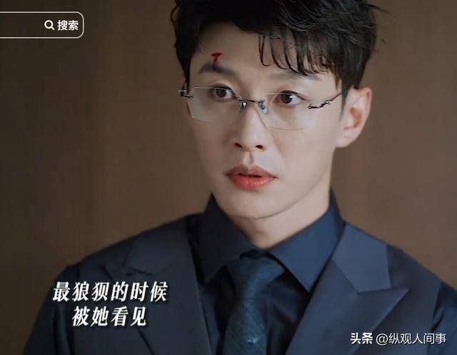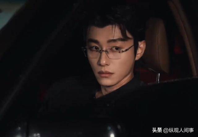 密闭空间里,他身着笔挺黑西装,金丝眼镜后的眼神藏着上位者的玩味与锐利,推眼镜时指尖的停顿、扫过女主的余光、唇角转瞬即逝的浅笑,全程零台词却把 “斯文败类” 的张力拉满。