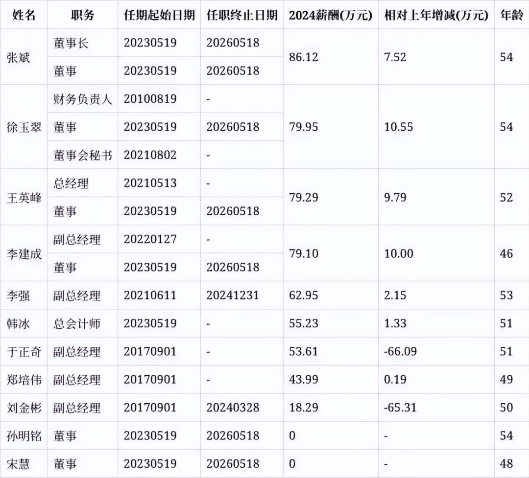 家居新范式注意到,澳柯玛已是连续第二年亏损,2024年,公司亏损4852.54万元。在之前2020年至2023年,公司净利润从3.1亿元降至5606万元。2024年澳柯玛员工总数从2023年的6904人缩减至6609人,员工人均薪酬从12.25万元微调至12.03万元。但董事长张斌年薪却增长7.5万元至86.12万元,总经理王英峰也增长9.79万元至79.29万元。