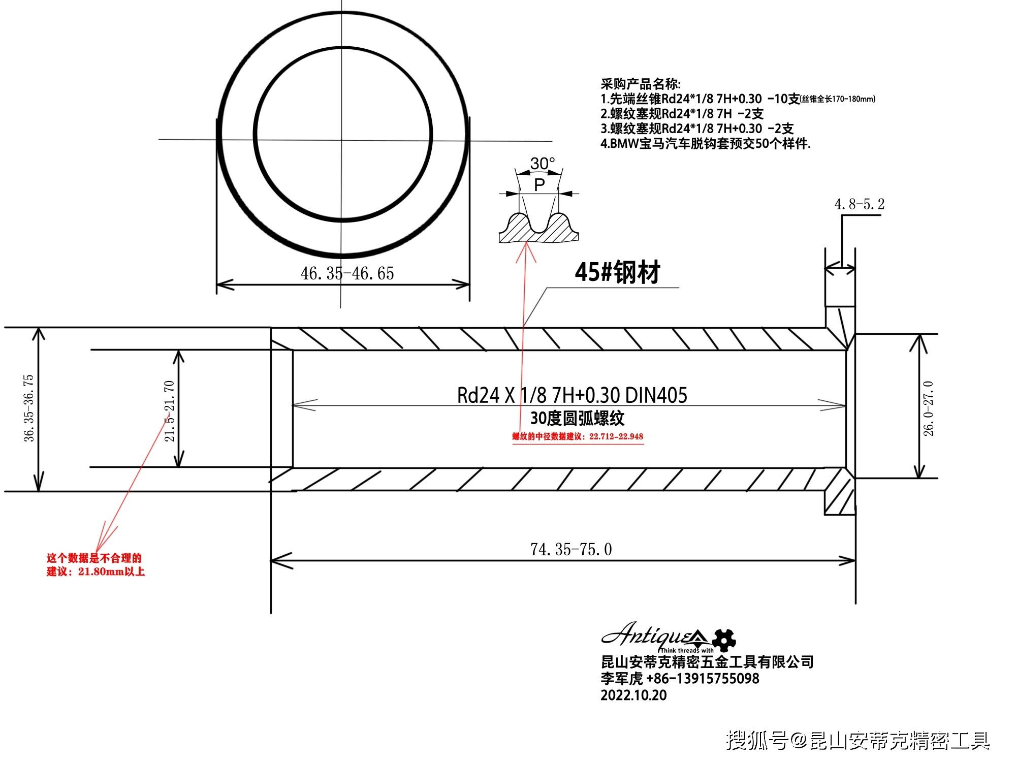 剖析BMW宝马汽车脱钩套Rd24×1/8 7H+0.30螺纹成型技术