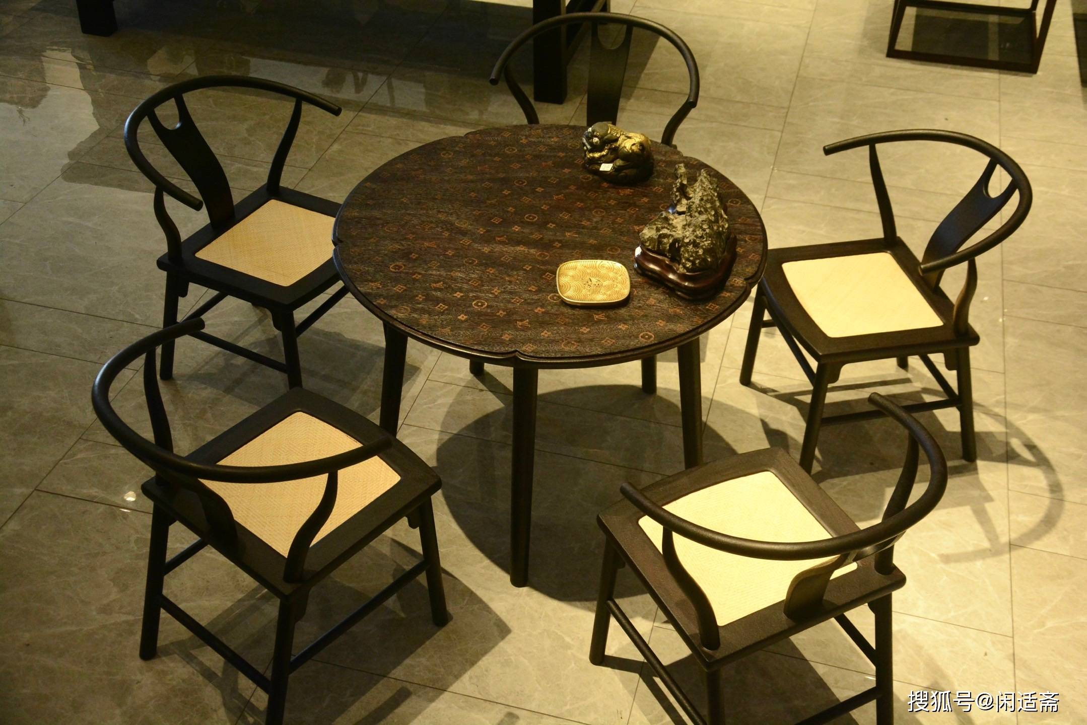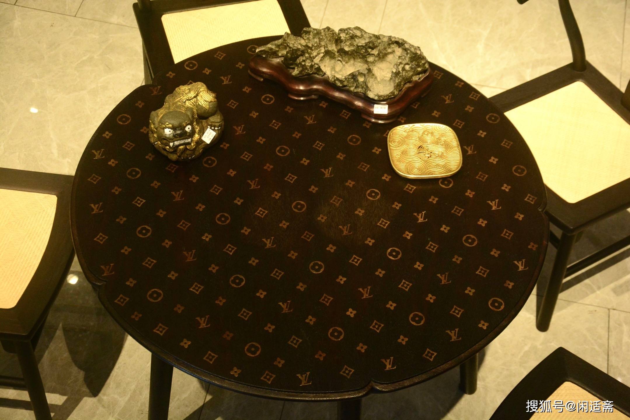 海棠形小圆桌,是中式空间中兼具灵动美学与实用价值的雅致器物,以圆润线条、精巧形制适配多元场景,自带温婉闲适的氛围。这款海棠小圆桌,打破传统与现代的边界,将老料铁力木的古朴、非遗工艺的底蕴与经典LV驴纹镶饰相融,搭配五把简约藤面靠背椅,成为家庭、工作、休闲场景皆可驾驭的百搭美物,尽显个性与格调。