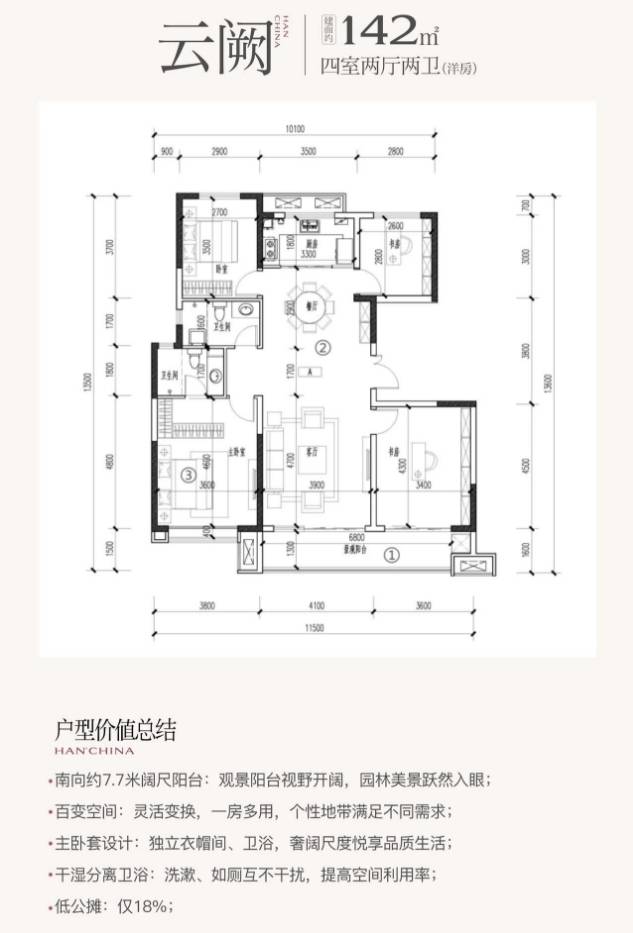 外院围合建筑,建筑围合中庭,融投·汉璟台以天地围合格局,彰显世家名门风范,同时2.56低容积率及匠心考究的建筑退台设计,尽享洋房社区尺度;同时科学日照规划让阳光清风自在流淌,视线几乎完全通透,