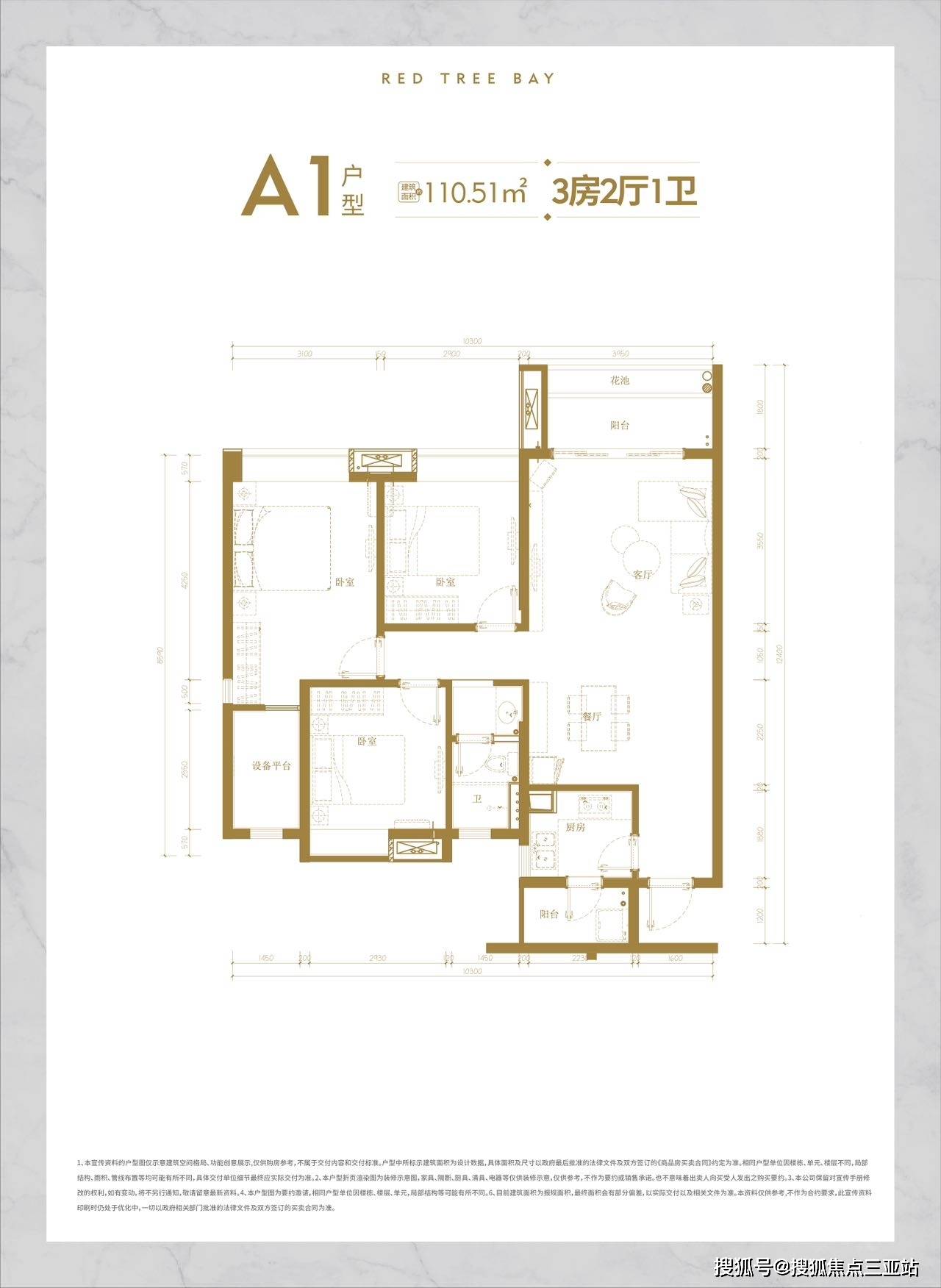 A1户型品鉴:建筑面积约110.5㎡