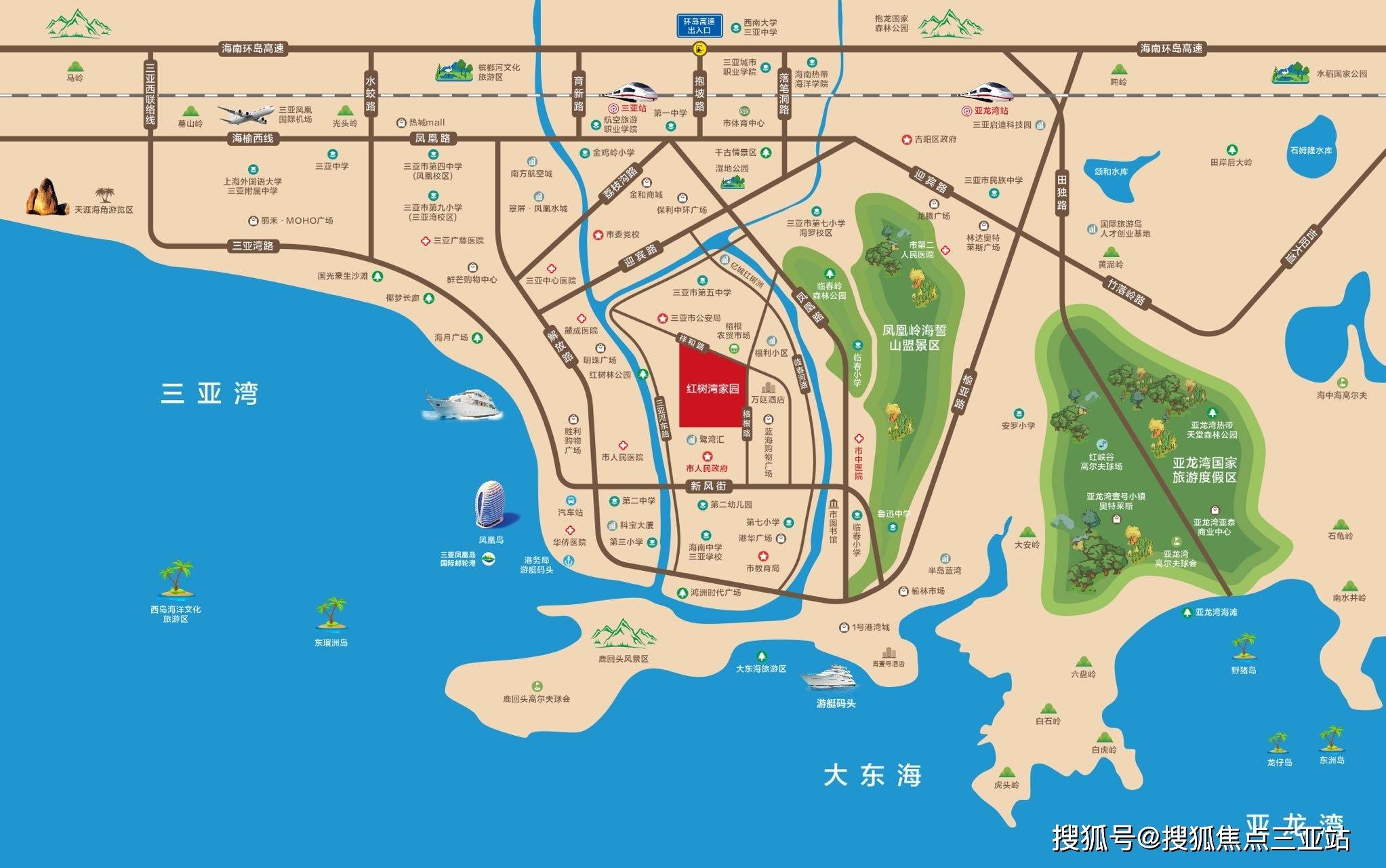 【红树湾家园】三亚城芯·河海美宅项目紧邻河东路位于河东路,距离三亚湾直线距离仅1.2公里,距离凤凰国际机场约15公里,车程约35分钟,距离三亚动车站约7公里,车程约20分钟。