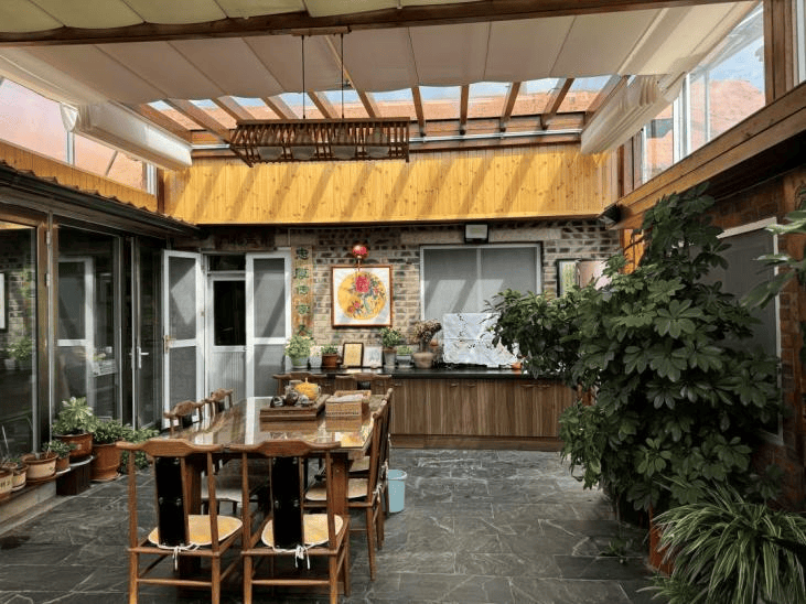 牧云庵村张吉香的美丽庭院,以“苔痕上阶绿,草色入帘青”为意境,将“诗中画画中人”的初心融入庭院布置,让百年画村的艺术底蕴融入生活。院内影壁自绘丹青、亭榭错落,自然景致与笔墨雅韵相映,充满诗意与艺术气息。