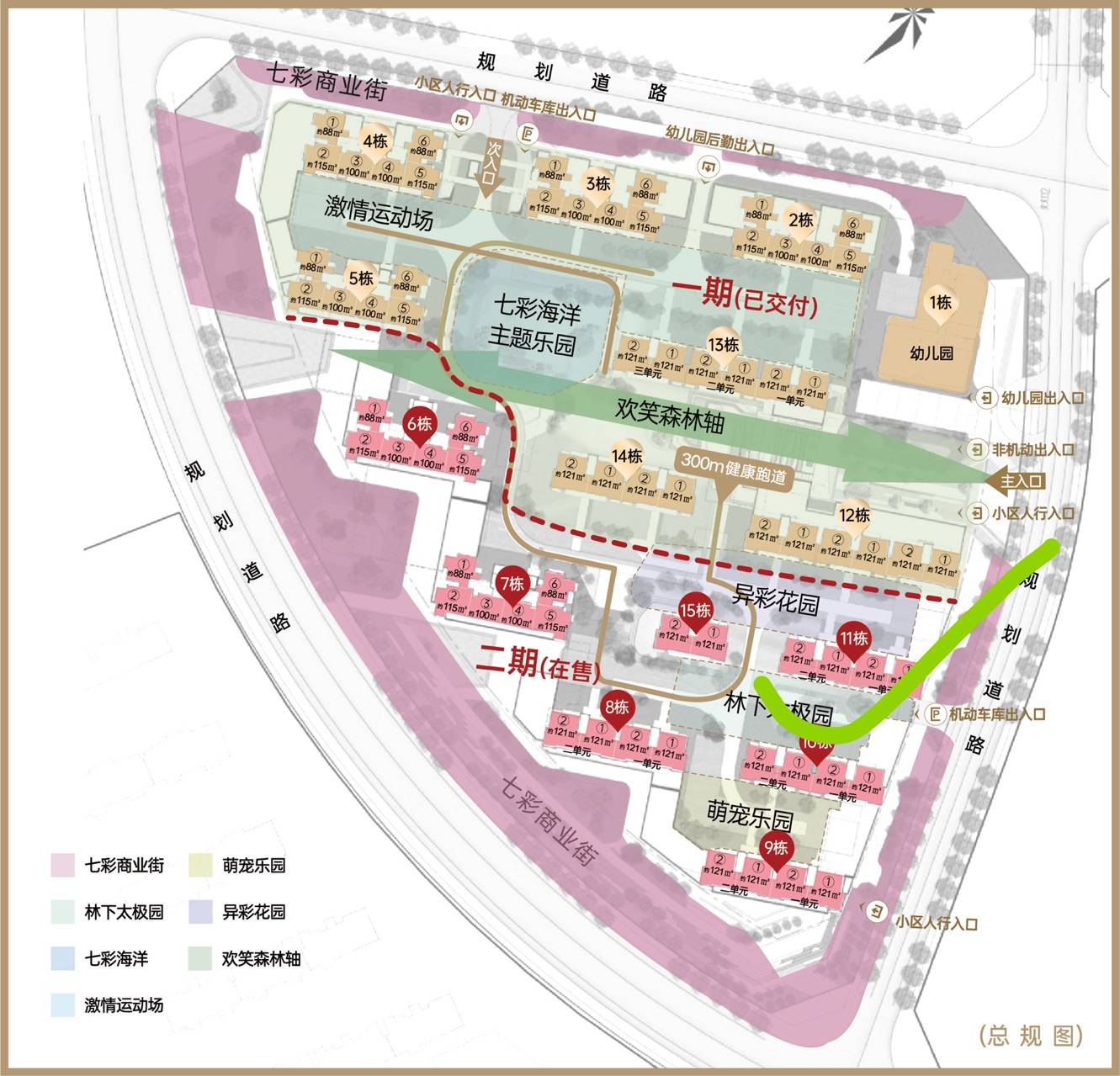 【产品规划】:14 栋住宅,其中6 栋小高层建面约88-115㎡(18层),8 栋洋房建面约121㎡(9-11 层)及 1 栋幼儿园(3层)