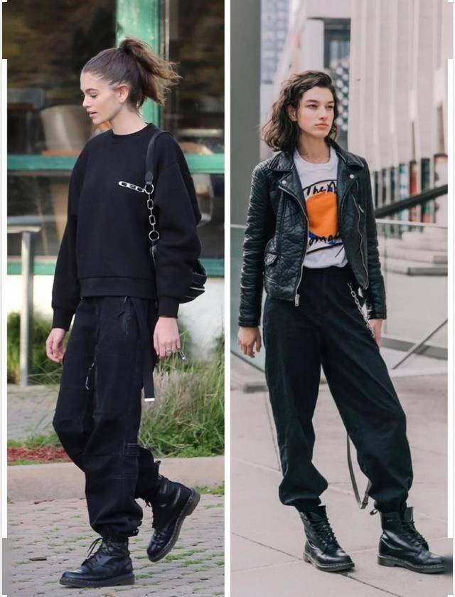 当然腿型好看又瘦的话,完全可以用小脚裤搭配马丁靴,上身简单套件卫衣就能出门。
