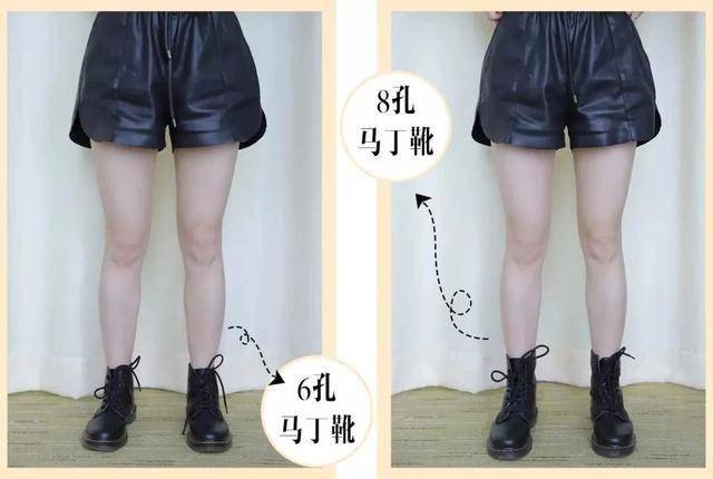 从孔数出发,8孔马丁靴比起6孔更加出色,如果配上马丁靴内加入了内增高,那显高的效果就更加理想了。