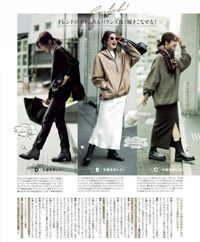 从搭配的角度出发,也有很多种选择,不同的裤子也可以搭配马丁靴。