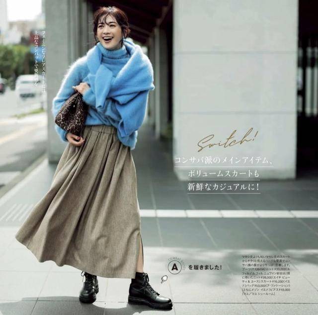 喜欢在冬天继续穿裙子,马丁靴也是完全能够胜任的,裙子的种类也很多,切换起来的风格变化会比裤子明显,可以根据自己需要的风格来选择。
