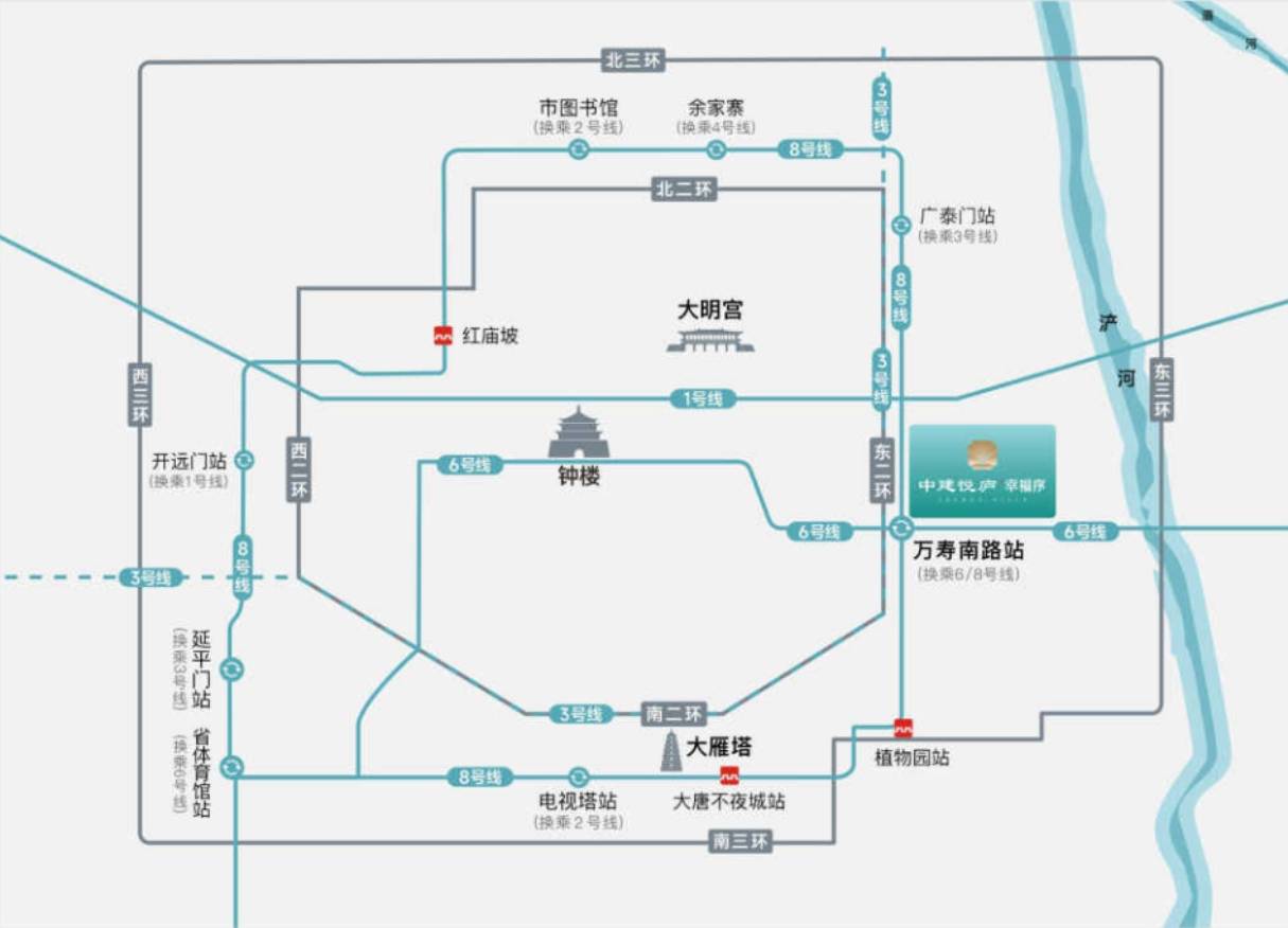 交通配套:无缝接驳地铁6号线,8号线(在建中),其中8号线为西安唯一地铁环线,串联5大主城区。同时项目直连二环及三环,可快速通达全程。