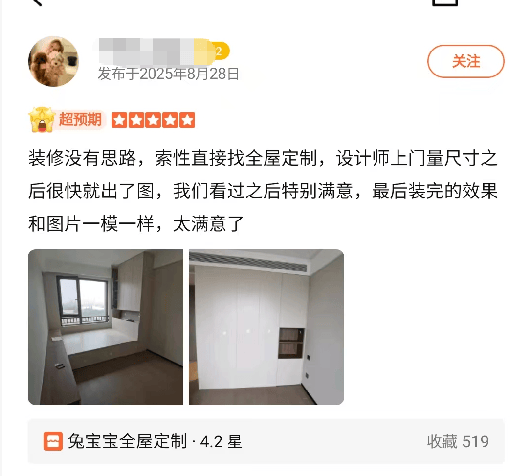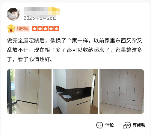 口碑与售后众多客户评价兔宝宝整木定制服务贴心,沟通顺畅。设计师耐心倾听需求,多次按要求修改设计稿,不急躁、不抱怨,全程以客户需求为核心;安装师傅严格按设计稿施工,从设计到安装流程顺畅。定制后空间利用率大幅提升,收纳空间充足,解决了杂乱问题,让家居环境更整洁,整体效果与设计图高度一致,视觉上让空间显得更宽敞。而且设计师会结合客户预算,推荐经济实用的方案,不盲目推销高价产品;板材款式丰富,环保性较好,用料扎实,无明显异味。同时,该品牌提供24小时在线易管家服务,包含免费咨询、设计等四大免费服务,售后实行5年质保+终身维护,响应及时,让消费者购买和使用都没有后顾之忧。