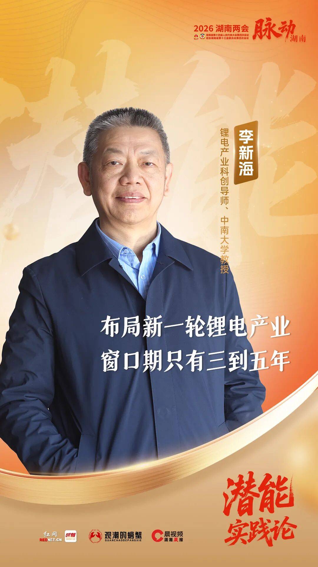 2026年湖南省两会召开之际,红网重磅推出6组政论体系列报道《潜能实践论》,从实践、观点等多维角度,探寻湖南的机遇与风口。今天推出第二组“环境篇”,受访嘉宾分别为锂电产业科创导师、中南大学教授李新海和宁乡经开区党工委书记、宁乡市委书记张作林。