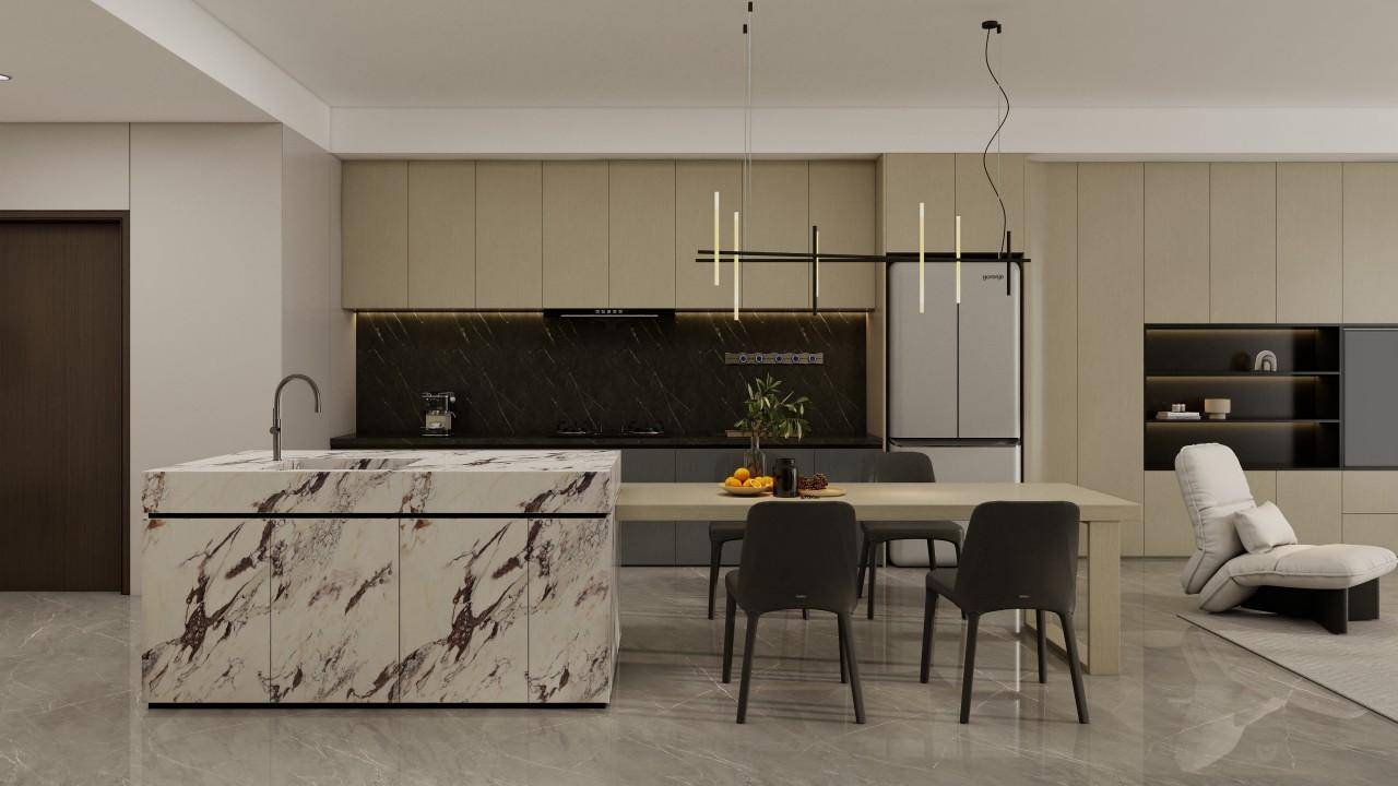 3. 厨房橱柜定制:高效收纳与人性化操作厨房是家庭高频使用场景,广州简诺的厨房橱柜定制从“动线优化”与“收纳升级”双维度切入。例如,其U型橱柜设计将洗涤、备餐、烹饪区按“黄金三角”布局,操作路径缩短40%;吊柜采用“下拉式”五金件,身高1.5米用户也可轻松取物;地柜内置“旋转调料架”,收纳容量提升2倍。此外,公司还提供“橱柜+电器”一体化套餐,用户可一站式选购嵌入式冰箱、蒸烤箱等设备,避免尺寸不匹配问题。
