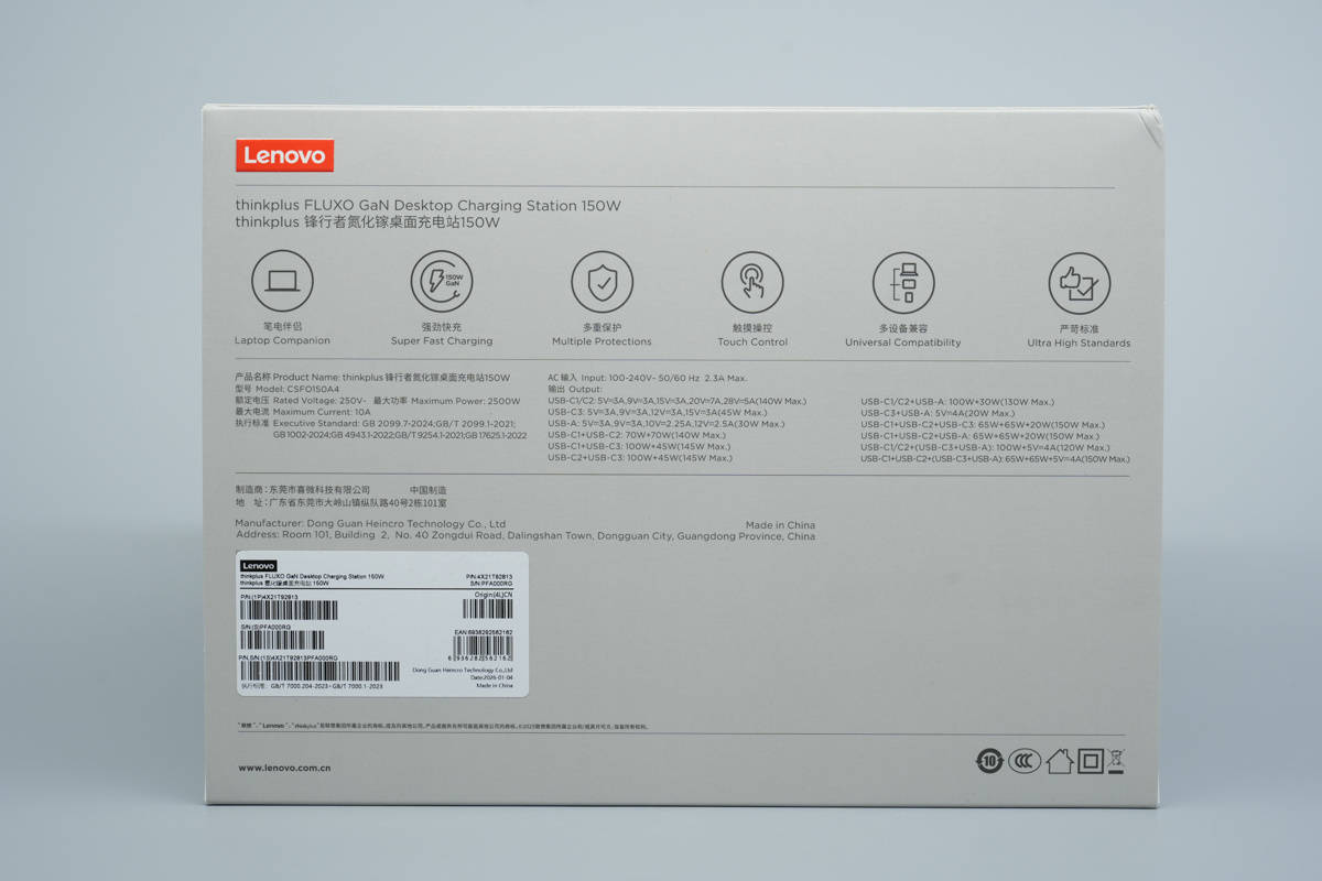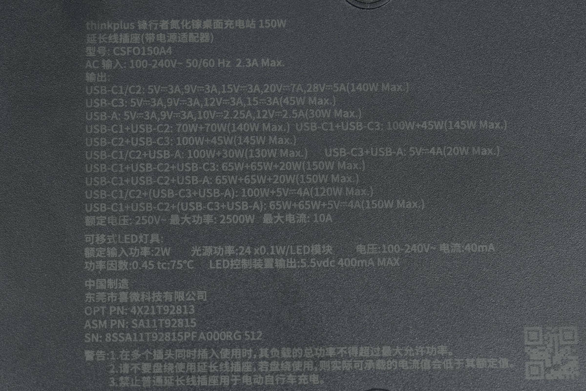 本期拆解带来的是thinkplus锋行者氮化镓桌面充电站,这款充电站具备3个AC插座,3个USB-C接口和USB-A接口,USB-C接口支持140W输出功率,总输出功率为150W,支持自动功率分配。