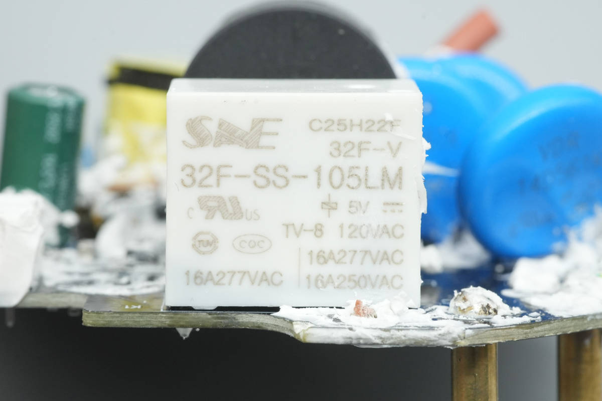 继电器来自三易,型号32F-SS-105LM,触点容量为16A250VAC,线圈电压5V。