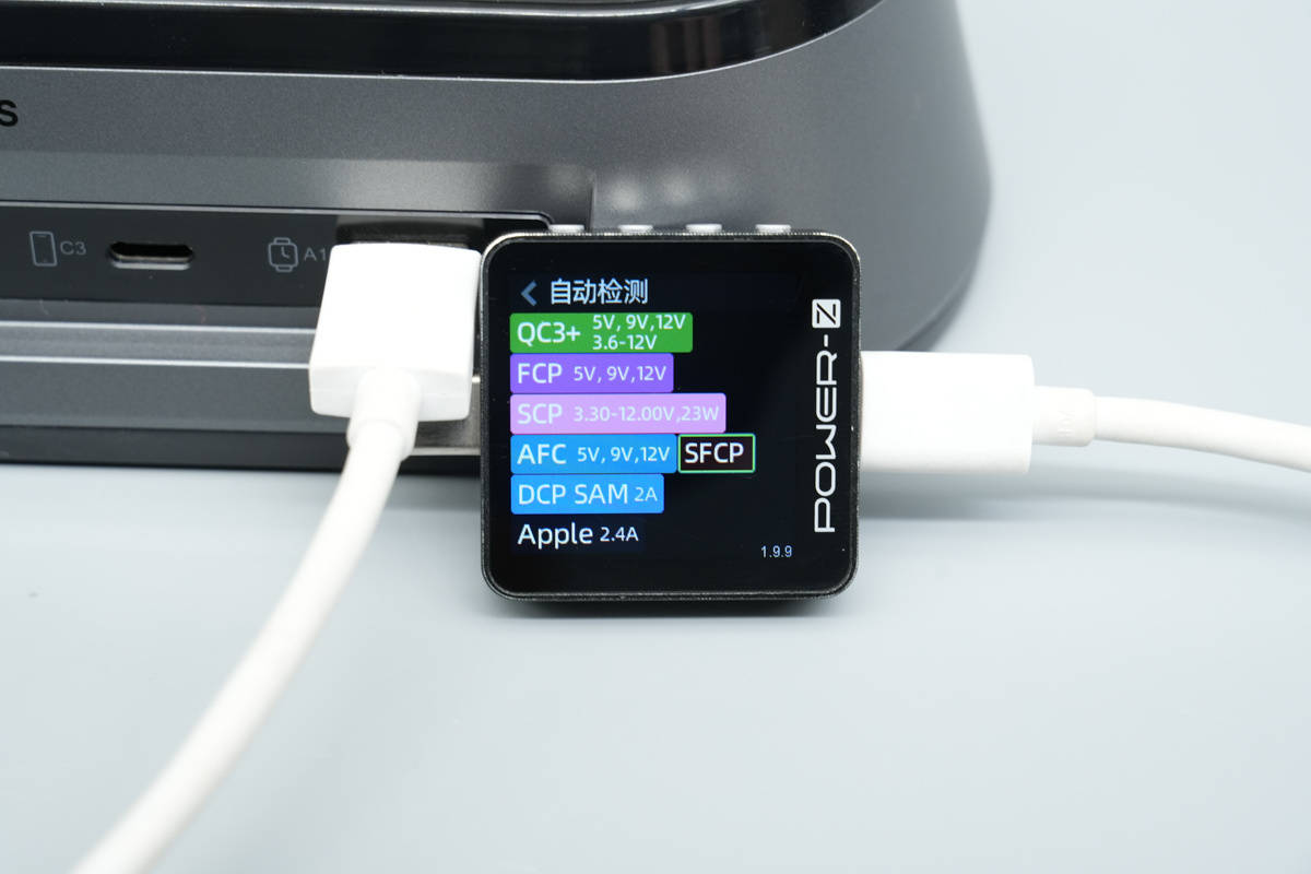 测得USB-A口支持QC3+、FCP、SCP、AFC、SFCP、DCP、SAM 2A、Apple 2.4A快充协议。
