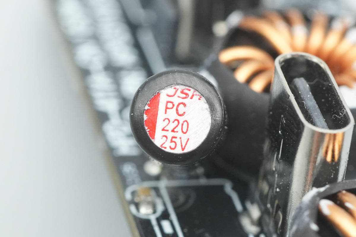 PCBA模块侧面设有同步整流芯片和滤波固态电容。