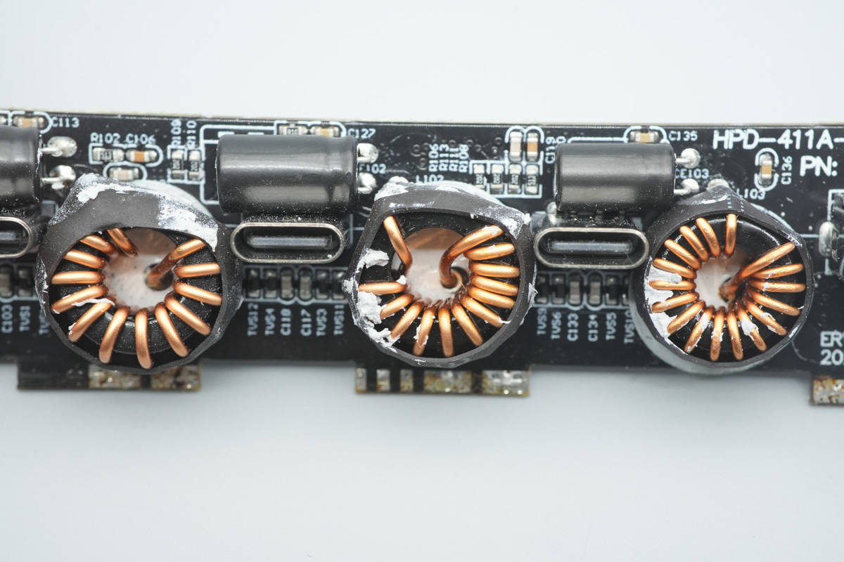 PCBA模块侧面设有整流桥,滤波电感和PFC升压电感。