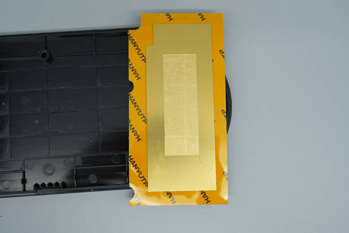导热垫另一面设有铜片,通过双面胶粘贴固定。