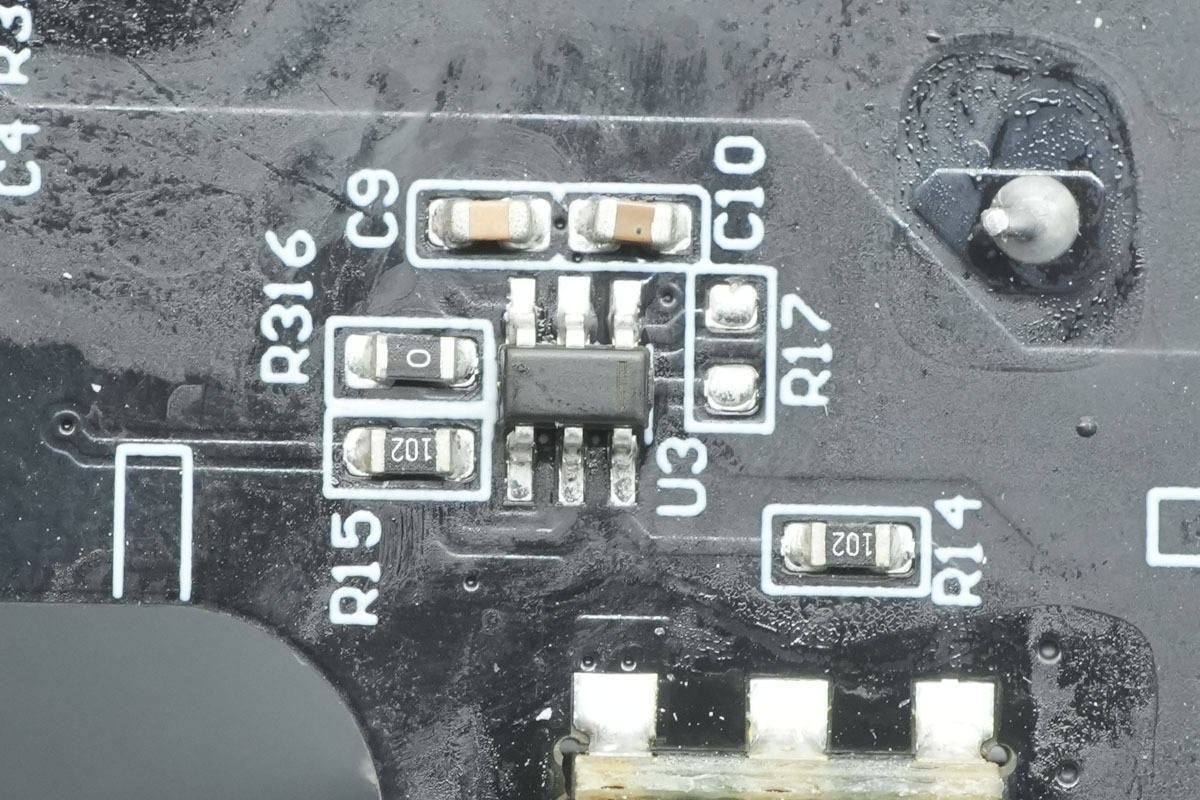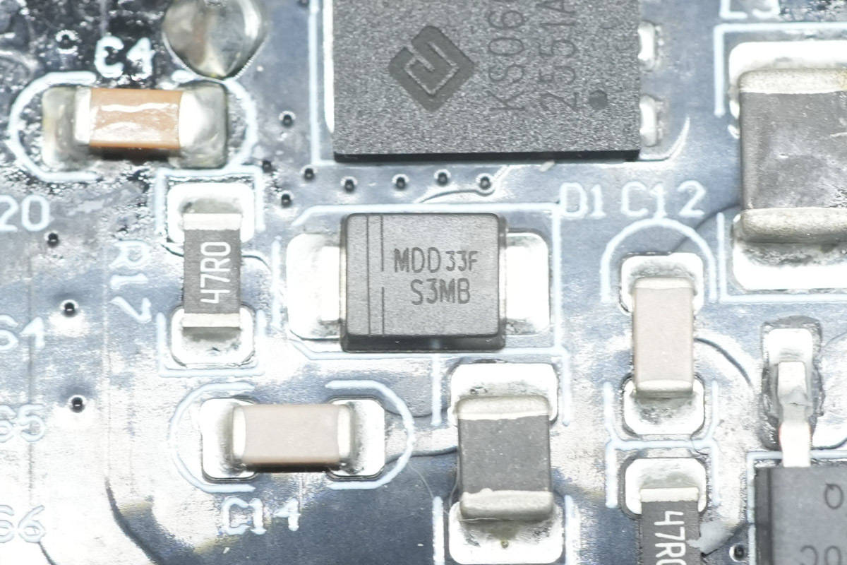 另一面焊接降压协议芯片,同步降压开关管和VBUS开关管。