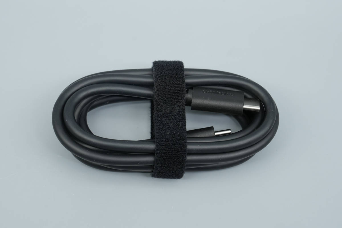 附带充电线线为USB-C to USB-C类型,线缆端子磨砂方便插拔,同时设计有thinkplus品牌。