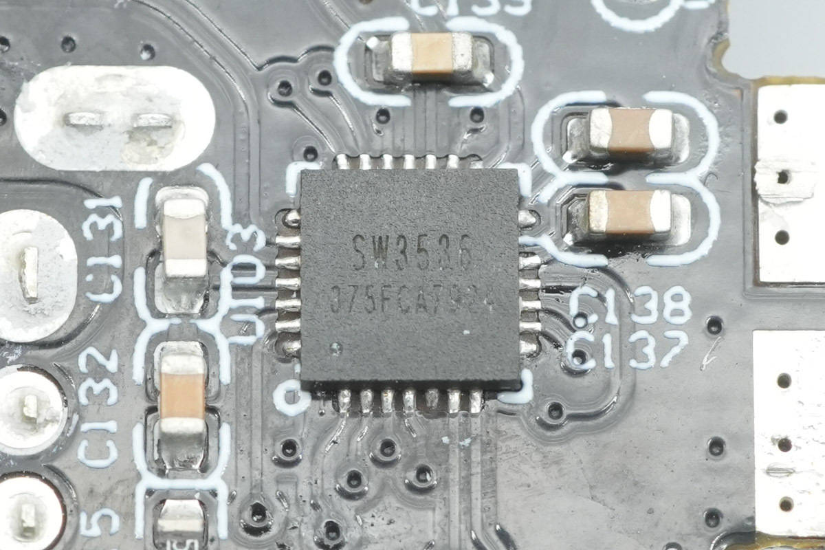 USB-C3和USB-A口的降压协议芯片采用智融科技SW3536,这是一款高集成度的多快充协议双口充电芯片,支持USB-A+USB-C双口快充输出,支持双口独立限流。内部集成了7A高效率同步降压变换器,支持PPS/PD/QC/AFC/FCP/SCP/PE/SFCP/TFCP等多种快充协议,最大支持140W输出功率。