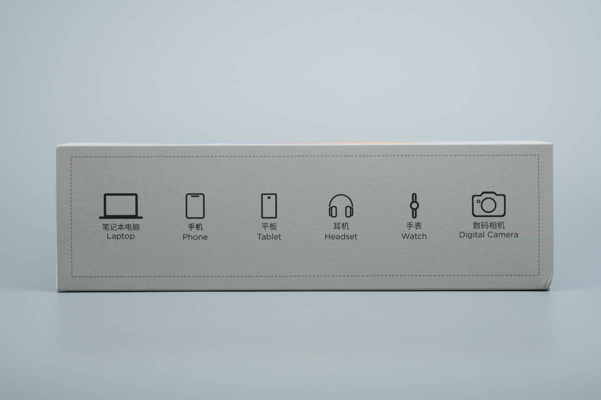 包装盒顶部印有支持充电的设备。