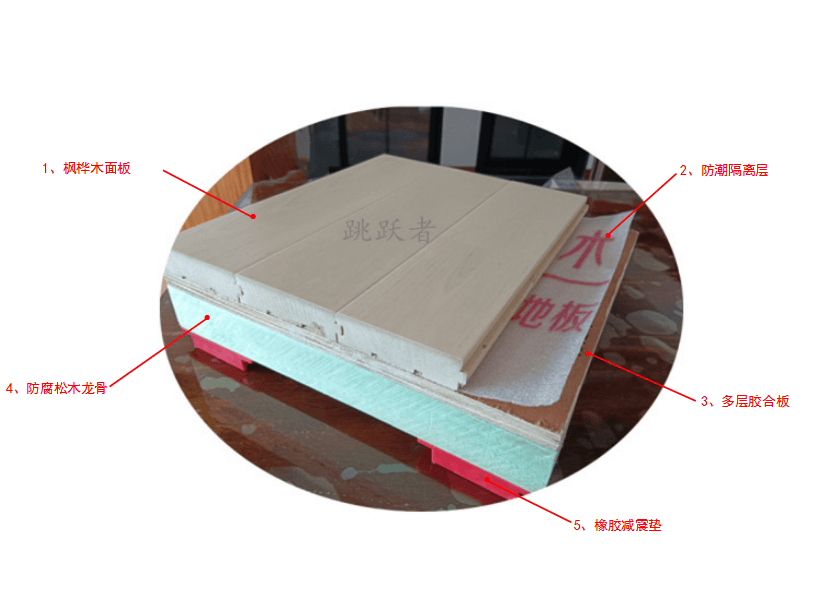 在选材上,德冠木业使用了天然实木材料,可保证人们在比赛活动中,因大肺活量的呼吸无有害挥发物的吸入。在结构设计上巧妙地利用了天然实木纤维在受外力后的弹性,保护运动员的腿骨不受落地时冲击力伤害。又采用了橡胶找平减震垫,可大量吸收人们在运动中所产生的冲击力,从而有效的保护了运动员,使该结构产生了脚感和舒适性,可承载运动员在运动中对木地板产生的冲击载荷。