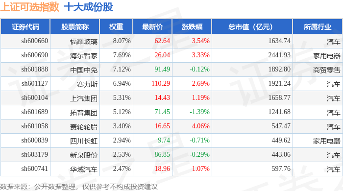 上证可选(000035)指数十大成份股详情如下: