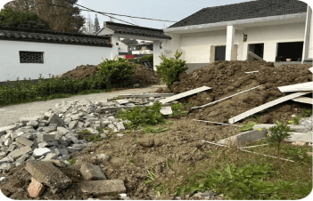 面对旁边杂草丛生、杂物堆积的闲置空地,结合“渔里问道”和美乡村片区的建设,巾帼农家乐主理人傅亚君决心将其改造为兼具一个兼具颜值与实用性的休闲庭院,使之成为连接顾客、村民与美好生活的温馨纽带。