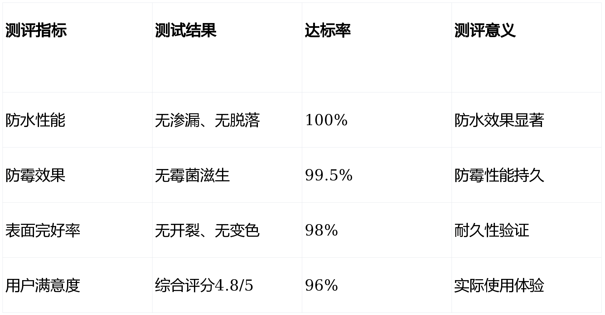 施工关键:必须采用专用防水底漆+面漆系统,严格控制施工环境湿度。建议选择提供浴室专用检测报告和施工方案的产品。"
