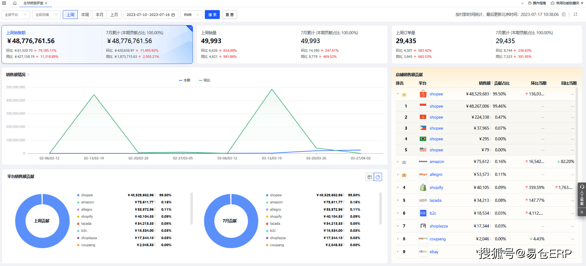 在数据分析方面,易仓ERP的销售罗盘功能可以多维度展示销售趋势,帮助卖家及时调整策略应对美国关税带来的市场变化。