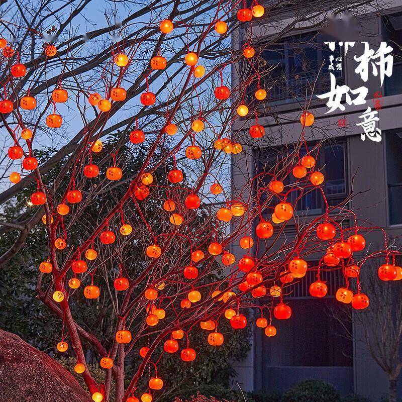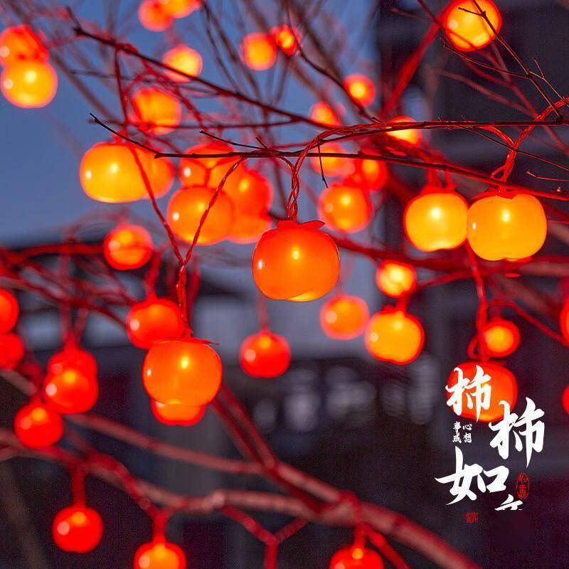 新年柿子灯串以其独特的造型和美好寓意成为近年来的网红产品。"柿柿如意"谐音"事事如意",挂在树上或墙上不仅美观,更寄托了对新年的美好祝愿。这款大号带字柿子灯采用高亮红光设计,50米长的灯串上均匀分布着200颗LED灯珠,红光搭配红线,在夜色中格外醒目喜庆。
