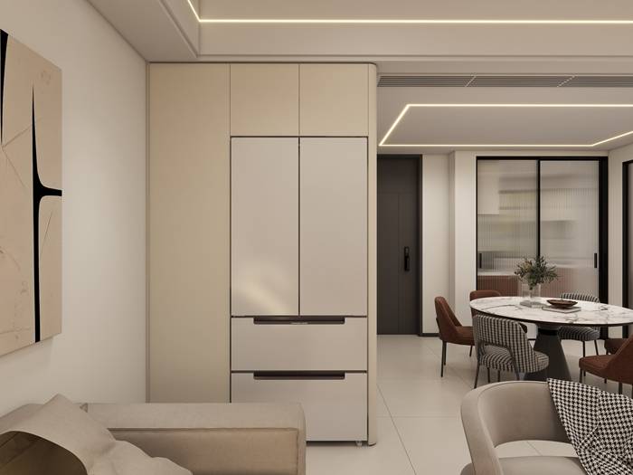 - 全案定制适配:摒弃模块化局限,以全案思维精准适配多元户型。无论是大宅的极简演绎,还是小户型的边角利用,皆通过专业设计转化为实用与美学的结合。严谨的三段测量与双岗检测流程,确保异形空间也能实现严丝合缝的定制效果。