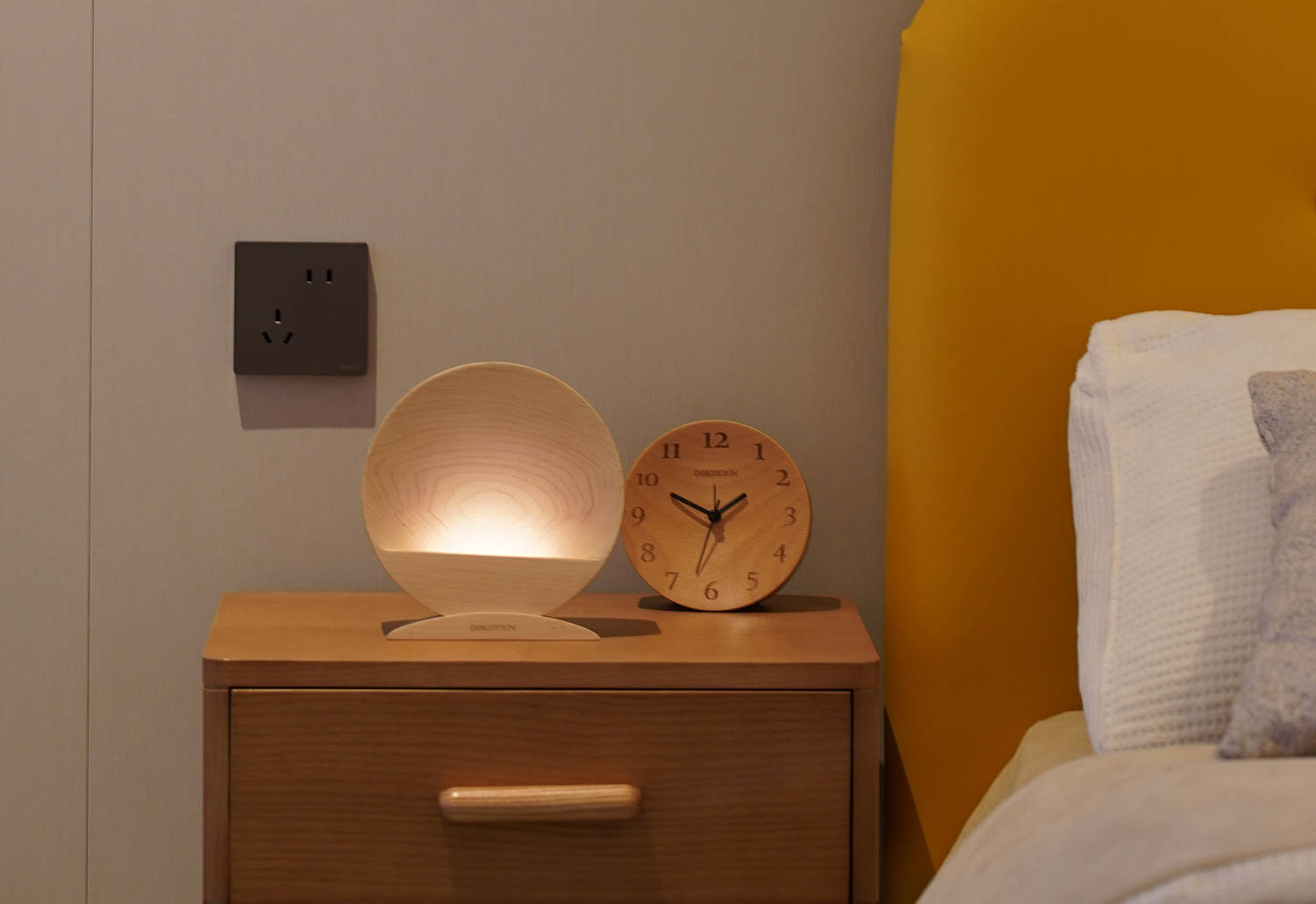 场景与结果: 无感化交互: 搭载触摸感应系统,轻轻一触即亮/灭,操作直觉且充满仪式感,避免了在黑暗中摸索开关的窘迫。