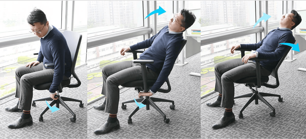 产品亮点三:柔性追背设计能够精准贴合身体曲线,保护脊椎;一键操控集升降、滑座、后仰调节于一体,操作便捷,提升使用体验。同时,椅背可145°后仰,配合广角机械头枕多向调节,支持短暂休息和颈部支撑。