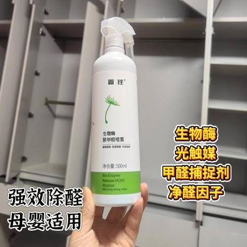 先说**鑫佳除甲醛喷雾**,它就是春节除醛的“急救款”,主打根源分解,帮你快速瓦解藏在家具、软装里的甲醛。和普通喷雾靠香精掩盖异味不同,它采用植物生物酶+纳米光触媒双效技术,不用依赖阳光,室内普通吸顶灯就能激活,哪怕是衣柜内侧、抽屉底部这些光照差的隐蔽角落,也能高效起效。