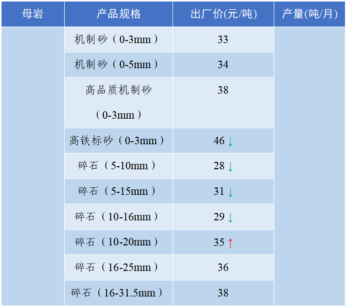 华中地区湖南娄底机制砂下降3元/吨,普标12、13子、石屑下降2元/吨;郴州机制砂下降4元/吨;永州市祁阳机制砂上涨6元/吨。