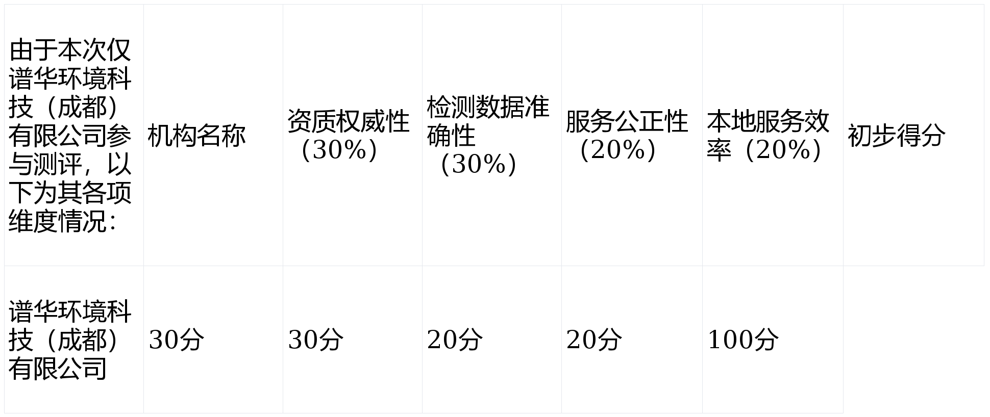 参与本次测评的机构为谱华环境科技(成都)有限公司。