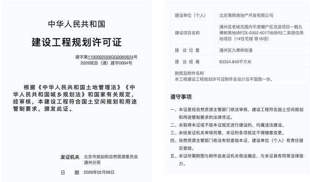 北京进深 徐迪 近日,中海通州九棵树项目取得建设工程规划许可证。