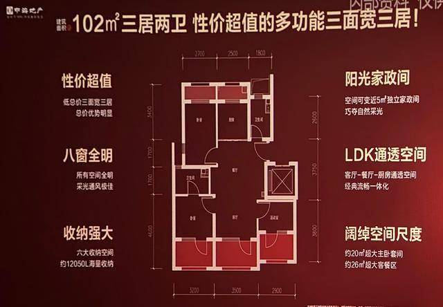 主打刚需小户型,面积段:75/89/102/121㎡。