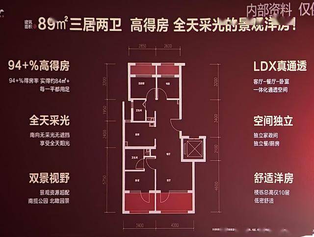 目前户型图尚未官宣,但流出的这版已有比较明确的尺寸标记,实得率还是相当高的。