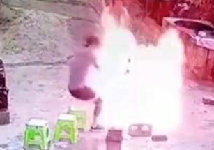 惊险!水泥地上正烧烤,地面突然“自爆”