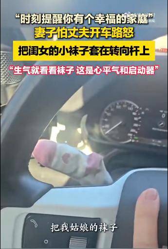男子表示,因自己性子比较急,妻子很怕他开车会路怒,于是才有了这一幕: “生气就看看袜子,这是心平气和启动器”。