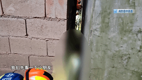 救援人员到场后立即开展现场研判,发现儿童脚部被夹缝内的水管死死卡住,身体被两侧墙体紧紧挤压,因害怕不断挣扎,极易造成二次伤害,施救空间有限,救援难度较大。